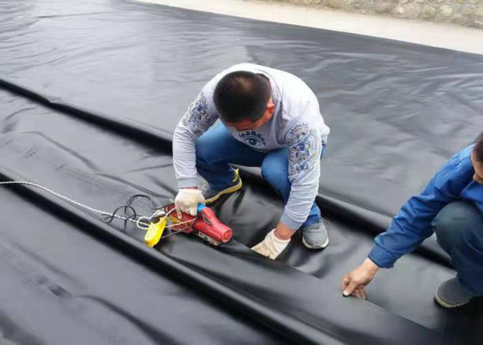⑥為了防止因?yàn)闇囟绒D(zhuǎn)變造成原材料收攏、皺褶狀況或應(yīng)用原材料產(chǎn)生地應(yīng)力,因而鋪裝完的防滲土工膜必須立即電焊焊接,待查驗(yàn)合格后立即遮蓋維護(hù)原材料。