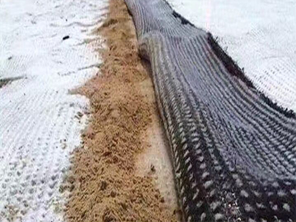 4、在GM/GCL復合襯墊的施工中,已鋪完成的GCL應在當日完成HDPE膜的施工或鋪設300mm厚黏土保護層,當日不能完成HDPE膜或黏土保護層的施工,應對GCL進行覆蓋,以防下雨下雪而使GCL先進行水化及強烈陽光對GCL的爆曬。