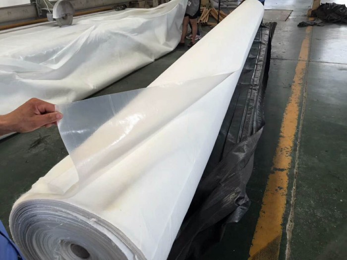復合土工膜是在薄膜的一側或兩側貼上土工布,形成復合土工膜。其形式有一布一膜、二布一膜、兩膜一布等。